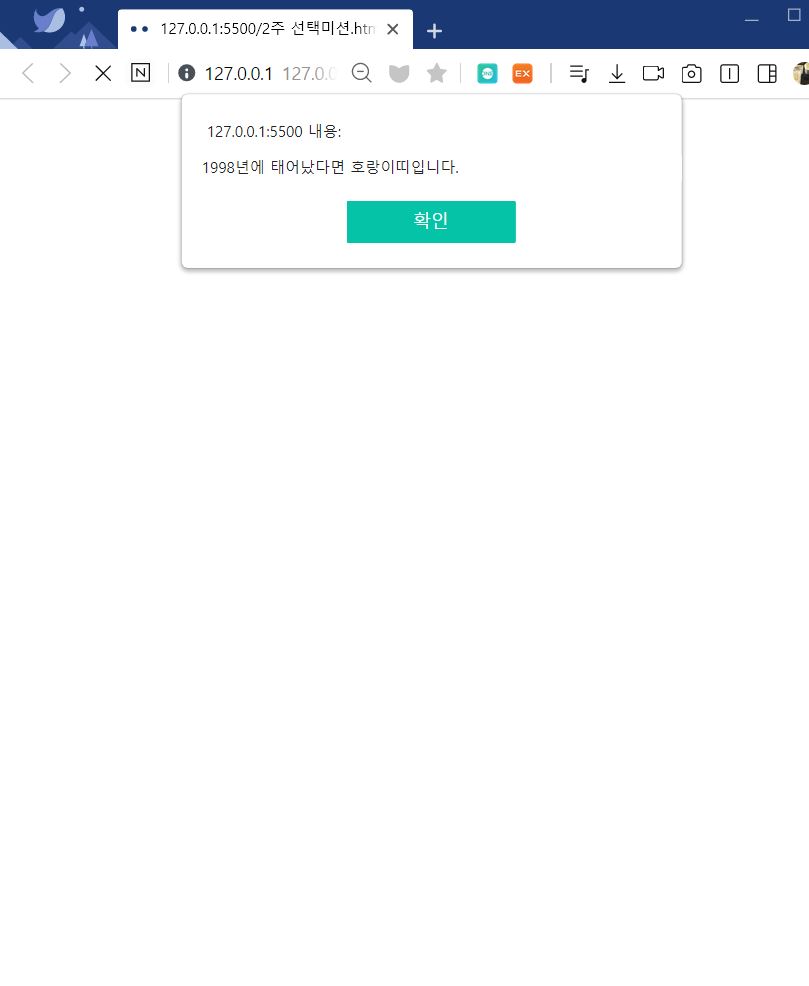 제가 태어난 해를 입력하니 그 연도에 맞는 띠가 출력이 되었네요. 저는 1998년 호랑이 띠입니다.