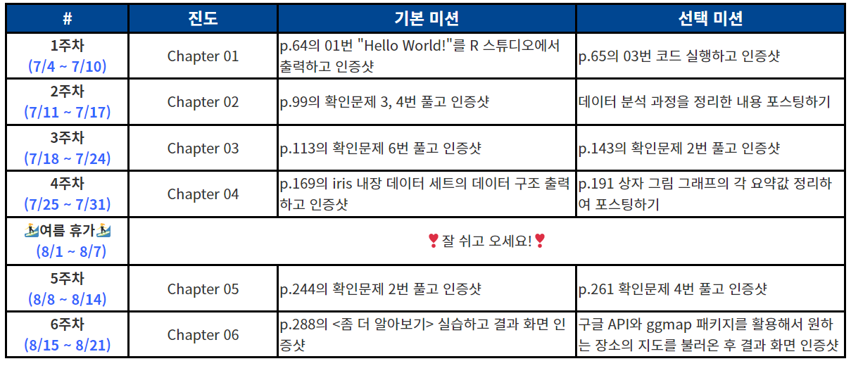 | [혼공단 8기] 혼자 공부하는 R 데이터 분석 3주차 후기 및 미션 인증하기 (0) | 2022.07.24 |