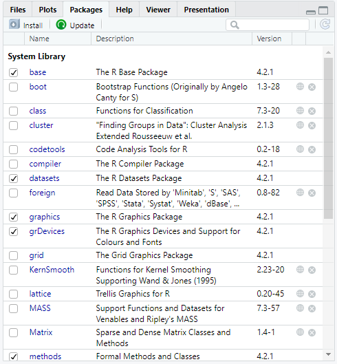 (2) R 스튜디오 Packages 탭