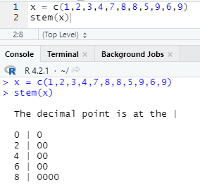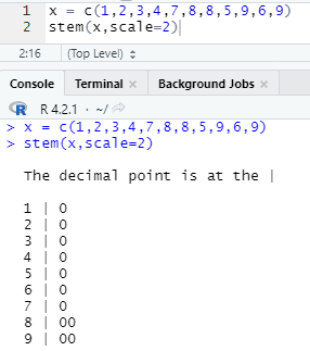 - The decimal point is at the | : 수직선을 기준으로 줄기는 일의 자리, 잎은 소수점이라는 의미